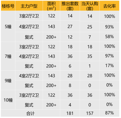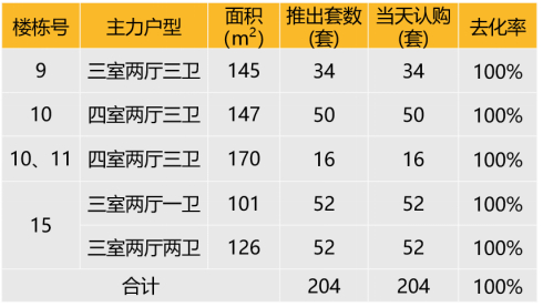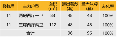 本次推出户型面积及开盘当天认购去化情况