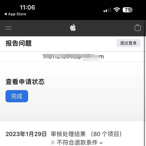 当被问及不通过的具体原因,苹果客服称,退款审核是针对用户账号、订单信息和Apple退款政策综合评估的结果,是封闭的内部操作,并不由人工客服参与,因而无法给出解答。