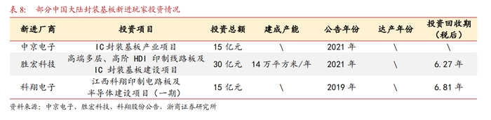 东方财富证券分析师邹杰2月3日研报指出,IC载板项目投资周期较长,行业进入壁垒较高。中国大陆厂商市占率较低,尤其在ABF载板等高端产品领域,国产化率极低,大陆厂商替代空间巨大,具有弯道超车的机会。