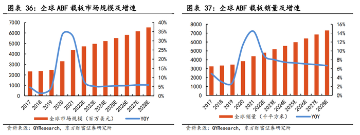 QYR预计,2028年全球ABF载板市场销售额将达到65.29亿美元,2022-2028年的CAGR为5.56%,预计2028年中国市场将达到13.64亿美元,全球占比将达到20.9%。
