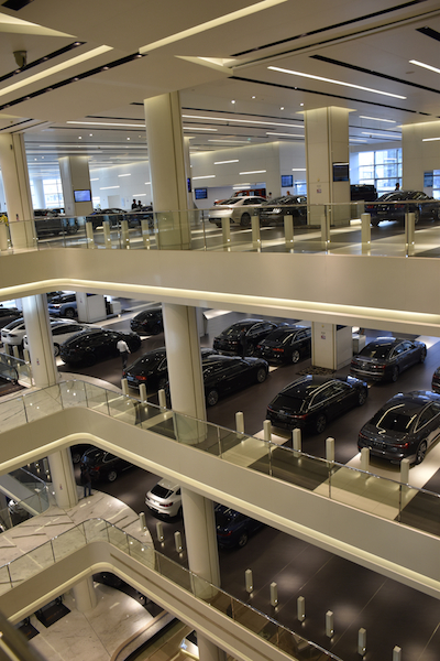 据接待记者的销售顾问贾小姐(化名)介绍,澳康达内部共有6层立体汽车展厅,面积达到了7.3万㎡,具体来看分别有:奔驰和宝马轿车展厅,名车和保时捷展厅,奔驰和宝马越野车展厅,奥迪和路虎展厅,大众、通用、雷克萨斯、捷豹展厅以及日系展厅。