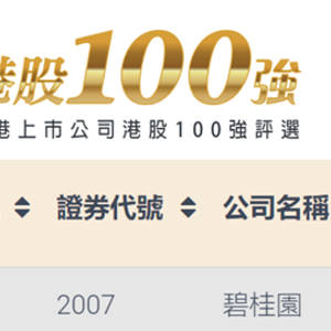 港股100强出炉,内房企碧桂园再度上榜
