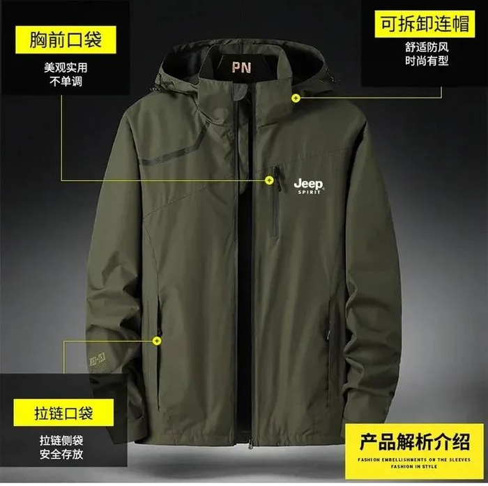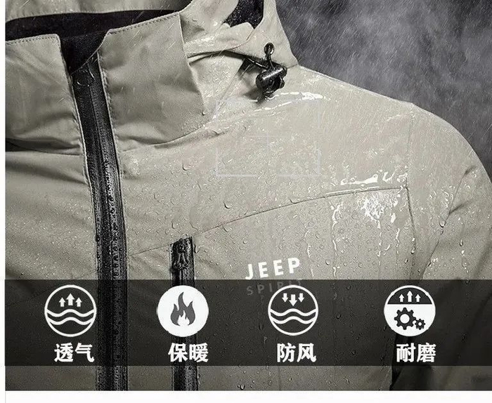 所以今天小编介绍的这件新款防风防水防污的冲锋衣——JEEP SPIRIT 加绒冲锋衣。设计感强,上身效果好,款式不过时,随便穿个3、5年完全没问题。