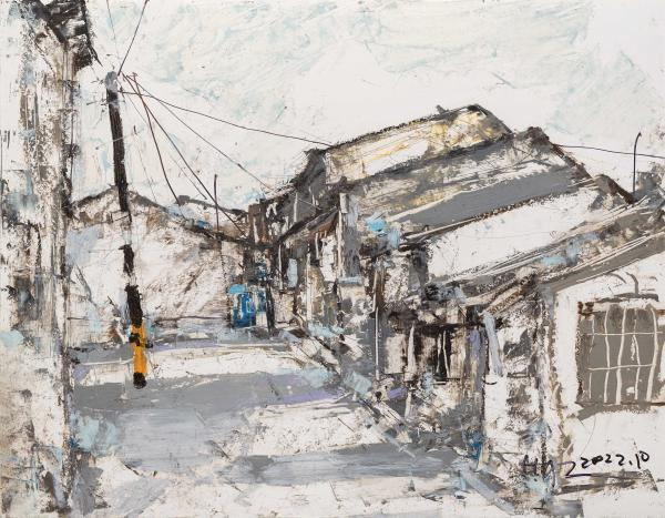 刘曼文画中的灰色,主观写意地表现了她对江南水乡、古镇的情感。王琨在用固体油画颜料作画时,充分地发挥了这些特性。田卫平的拙味和骆根兴的洒脱也正是基于固体油画颜料自由、任性、可随意发挥的特点。杨参军把固体颜料画在灰色纸上,犹如画油画时打底一般。殷雄用固体油画颜料稳稳地表现了油画颜料那种一丝不苟的色调。迟连城把固体油画颜料涂成彩色线条,如同速写般画下古镇。王嵬和谢森用固体油画颜料在纸上表现了油画的效果。李向阳把固体油画的灰调淋漓尽致表现了出来。沈雪江用固体油画颜料表现了套色版画的效果,发挥了它纯色的作用。