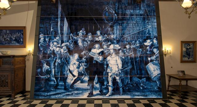 以蓝陶烧制的伦勃朗名作《夜巡》。图据:皇家代尔夫特博物馆