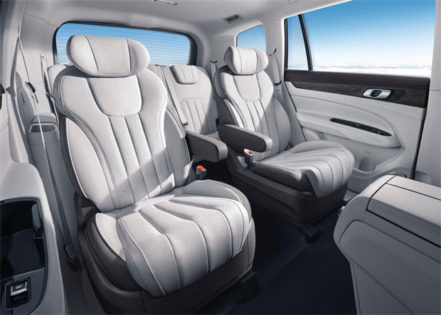 作为臻三排大七座宽适SUV,福特新领裕拥有越级车身尺寸和创新的座椅布局,赋予其堪比豪华保姆车的宽奢空间和舒适驾乘体验。福特新领裕长宽高为4905mm*1930mm*1755mm,轴距达到2865mm,傲视同侪。同级罕有的2/2/3座椅布局,赋予整车更强的独立舒适性。第二排145°舒压Pro航旅之座,配备4向调节航空头枕、3档可调通风/加热、座椅4向电动可调、可调节独立扶手、Dinamica® 环保超细纤维麂皮绒,让乘客宛如置身于飞机头等舱,尽享驾乘舒适。