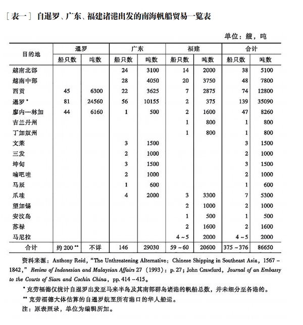 19世纪上半叶,随着西方殖民统治的进一步深化,东南亚地区反殖民统治和压迫的战争愈演愈烈,但即便在复杂的国际形势下,东南亚地区仍是中国十分重要的贸易对象。如在1805到1820年间,中国在东南亚从事远洋航海贸易的商船总吨数就已超过了英国来华船吨数的四倍以上;1820年前后,中国远洋行业与东南亚往来的船舶吨数与贸易额,同西方任一国家在东南亚的实力相比,仍然高居首位。