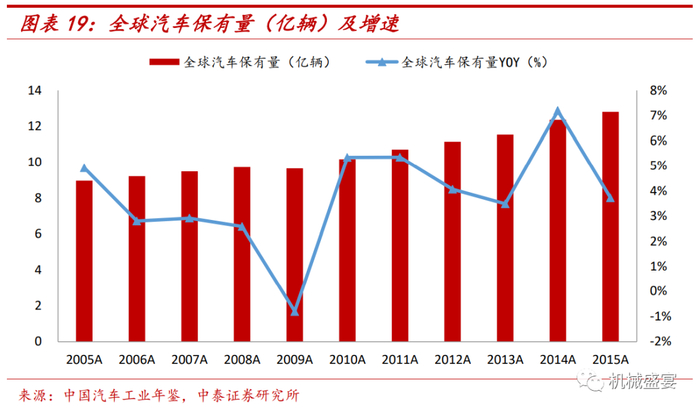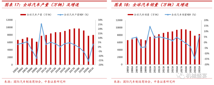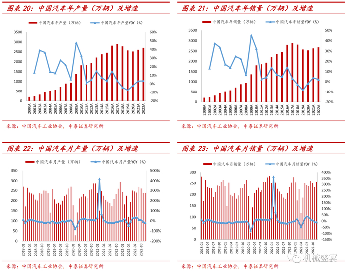 ①全球汽车产业稳定发展,疫情管控放松促进消费复苏。全球汽车存量市场巨大,汽车产业有望稳定发展。2018年下半年开始,国内汽车销/产量进入下行通道;2021年随着新冠肺炎疫情在全球范围内影响减弱,居民生产生活用车需求增加,全球汽车产销量出现回升。2022年底随着疫情管控放松,消费有望加快复苏,并且存量汽车市场依然巨大,预计汽车产业有望稳定发展,固定资产投资增长可期。