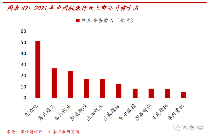 民营企业积极转型,成为业内中坚力量。2012年开始,随着国内制造业转移升级,机床行业进入下行周期,竞争加剧,低档通用型机床市场需求大幅下降;中高档型、定制型和自动化成套类机床市场需求快速增长。这一变化与国内机床行业的供给结构形成明显错位,境外先进机床企业利用产品优势快速抢占国内高端市场份额。近年来,国内涌现了一批以创世纪、海天精工、乔锋智能为代表的民营企业抓住了转型升级的机遇,致力于打造国产中高档数控机床产品,不断突破中高档数控机床核心技术,并且得到市场广泛认可,综合竞争力大幅提高,成为我国机床行业的中坚力量。