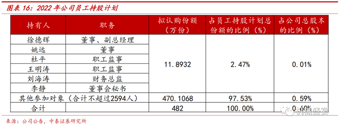 股权激励提高员工积极性,助力公司稳健发展。2022年9月,公司发布员工持股计划,拟向约2600名激励对象发放不超过482万股,占总股本比例不超过0.6025%,此次员工持股计划已于2022年11月完成非交易过户。员工持股计划的实施能有效激发员工积极性,提高经营效率,降低经营成本,有望助力公司稳健发展。