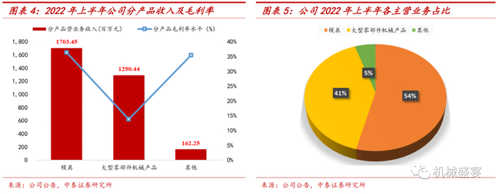 1.2、主要产品:轮胎模具盈利能力稳定,大型零部件业务收入增长