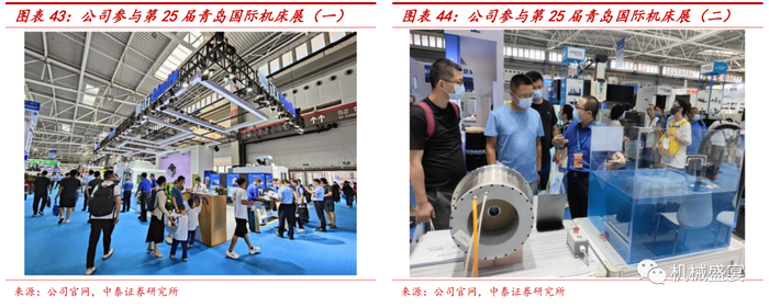 ②自主研发实力强劲,机床业务未来可期。公司机床自主研发功底深厚,已研制大型龙门加工中心、数控电极铣机群、电火花机群、五轴打孔机群等核心设备,公司通过自主研发能够降低生产成本,提高经营稳定性。目前公司已推出机床关键零部件系列化直驱转台、精密加工中心、五轴联动加工中心等产品,产品获得市场认可并形成销售,未来有望成为新的利润增长点。
