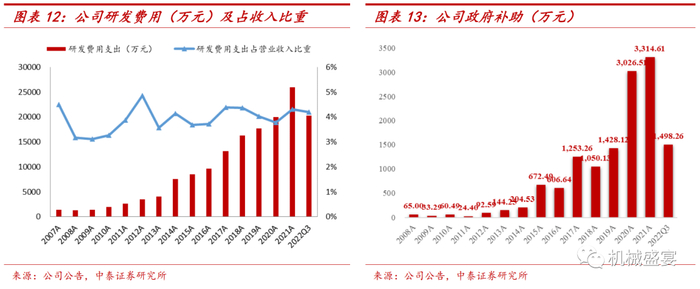 公司注重研发创新,产品质量受客户高度认可。公司始终将自主研发与技术工艺创新作为工作重点,积极推动自动化生产,持续对专用设备进行升级和更新换代,同时不断完善公司技术研发体系,进一步提高产品的竞争力。2022年前三季度,公司研发费用为2.02亿元,同比增长11.69%,占营收比重为4.20%。公司产品质量过硬,与多家世界500强客户建立战略合作关系,多次赢得客户“最佳供应商”奖项。、