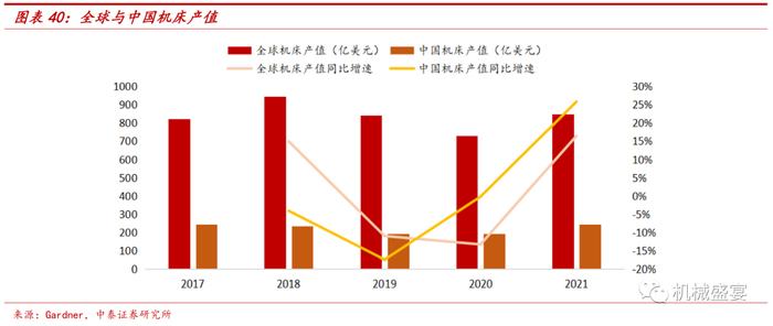 ①机床行业景气度回升,市场规模千亿级别。2020年我国机床行业为复苏起点,2021年机床产值为850亿美元,同比增加16.44%,2021年我国机床市场规模约2161亿元,总体规模可观。目前机床行业处于上行周期,预计该上行周期持续7~8年。公司作为布局机床的民营企业,是推动我国机床行业发展的中坚力量,有望充分受益于行业景气度回升。