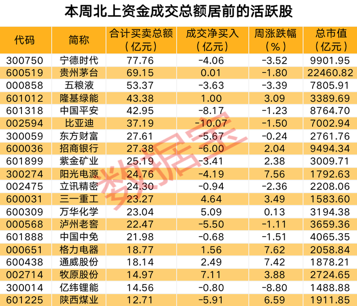本周北上资金结束了连续14周的净买入,周三开始三个交易日单边流出,合计一周净流出41.24亿元。