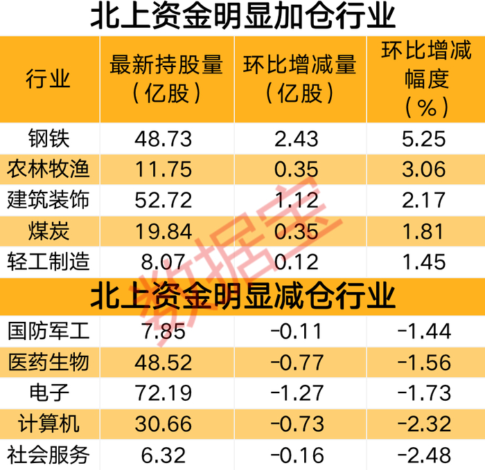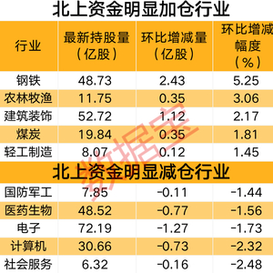 本周北上资金对各行业调仓幅度不大