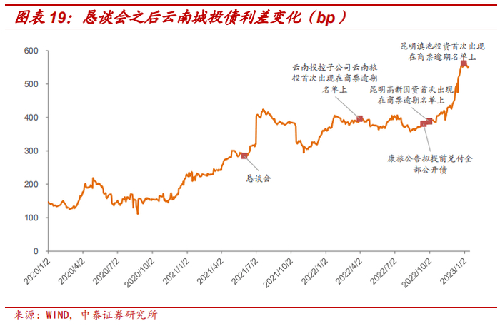 柳州市的负面舆情集中于2022年,注销土地使用权及商票逾期引发市场关注。2023年2月21日,柳州市召开恳谈会,提及“确保柳州市属国有企业所有债券均能够按期足额偿付”。和之前其他省份恳谈会类似,柳州此次恳谈会也只保证了债券的按时兑付,而从之前其他省份的恳谈会经验看,恳谈会对市场提振信心较少,市场更为关注恳谈会相关精神的落地。