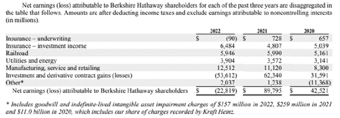 2022年全年,伯克希尔净亏损228.19亿美元,前一年度盈利897.95亿美元;营收为3020.89亿美元,前一年度为2760.94亿美元。