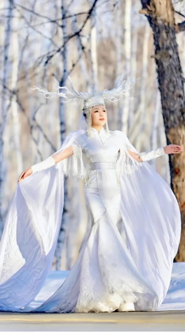 最近在周边县市学习时,她偶然看见了兄弟单位放在仓库里的鄂伦春族服饰,当即借来,顶着零下20℃的寒冷天气拍摄视频和照片。