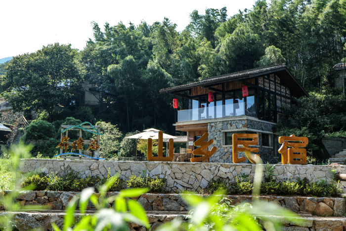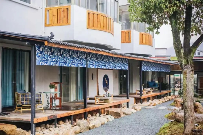 明居民宿整体建筑以水南村古民居为基础打造,在保持原有建筑古朴风貌的基础上,又添加了现代化钢结构和众多的文艺元素,屋在画中,画在屋中,整体建筑千姿百态、独具内涵。