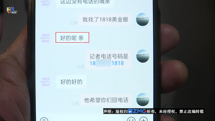 之后杨先生也把问题反映给了店家客服,说没有原装线没法充电,对方说你不是退货了吗?可杨先生不想退货,只是想要充电线。平台客服介入后,说可以为杨先生申请10元退款,同时无需退货。但杨先生认为,这根本没有解决自己的问题。他现场询问店家客服,电话号码是多少。对方说没有电话。杨先生说找了1818黄金眼,对方回复“好的呢,亲”。