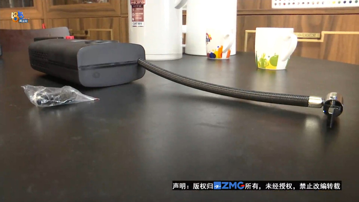 杨先生买的这个电动充气泵,有一块砖那么大,按一下上面的按钮,就可以充气。他介绍,这是在“拼多多”上的余姚市铭洋汽车用品店买的,花了62.43元。记者注意到,商品描述是车载无线充气泵、自带电池、汽车自行车摩托车多功能移动充气泵便携式,商品详情页里注明取电方式是自带电源,电源线长是无线。