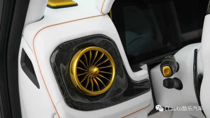 内饰部分,也具有大量的定制元素,示例车型这采用纯白色皮革和金色饰边,另外的棕褐色部分也是内饰不至于过于单调。前排座椅可向前折叠,以便入座后排。
