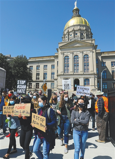 2021年3月,一名枪手袭击佐治亚州亚特兰大市由亚裔经营的两家水疗中心和一家按摩店,造成8人遇害,其中包括6名亚裔女性。有南亚裔血统的美国副总统哈里斯当时承认,种族主义和仇外情绪在美国一直是“真实存在”的,美国一些身居高位的人把亚裔当作替罪羊,那些人有话语权、影响力,却在散播仇恨。