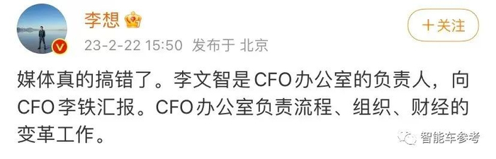 但现在可以确定的是,李文智的确来了,只不过担任的是理想CFO办公室负责人。
