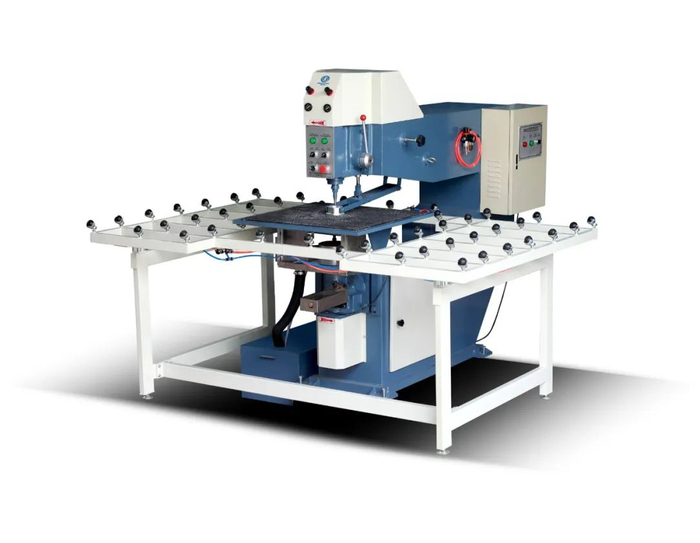 光伏玻璃在线激光打孔设备是光伏玻璃深加工连续生产线的一部分,是光、机、电一体化设备,主要由加速输送台、进料输送台(含旋转装置和涂液装置)、激光打孔机、出料输送台(含旋转装置和破孔装置)组成。可加工2~6mm厚度光伏玻璃。