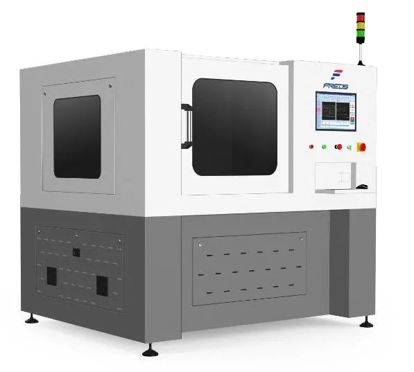其中激光打孔机是该工序的核心设备,一般由五大部分组成:激光器、电气控制系统、光学系统、投影系统和三维移动工作台,这五个组成部分相互配合完成打孔任务。激光器负责产生激光光源,电气控制系统主要负责对激光器供给电源和控制激光输出,光学系统是将激光束精确地聚焦到光伏玻璃的加工部位上。