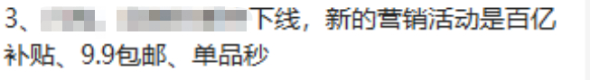 “内部群已经通知了,京东要上架百亿补贴、9.9包邮、单品秒杀等新营销活动。”某五金商家说着向亿邦发来了截图。