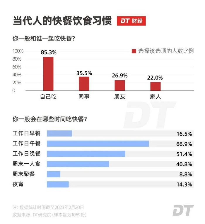 年轻人对快餐的态度是什么样的?他们有哪些想要按头安利的快餐店?为了得到答案,前段时间DT财经发起了一次关于快餐的调研,以下内容来自1068份有效问卷。