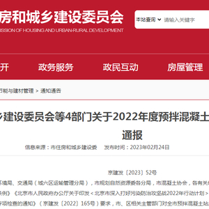 中国质量新闻网讯 近日,北京市住房和城乡建设委员会网站刊登北京市住房和城乡建设委员会等4部门关于2022年度预拌混凝土绿色生产情况专项检查结果的通报 京建发〔2023〕52号。