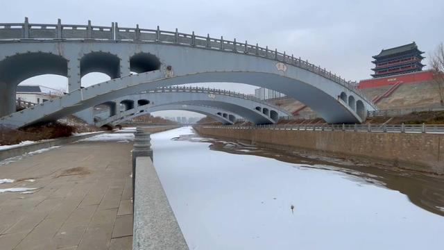 春寒料峭中,一场降雪过后,甘肃省白银市会宁县银装素裹,穿城而过的祖厉河大部分河面被冰雪覆盖,少量河水淙淙向北,朝着下游的黄河蜿蜒而去。