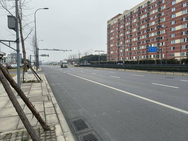 记者根据网传的视频坐标,来到成都市西源路与新业路交叉口,发现西源路出城方向路上,有几条明显的刹车印,最长的一条有数十米,道路一旁树木的支架已经被撞倒。