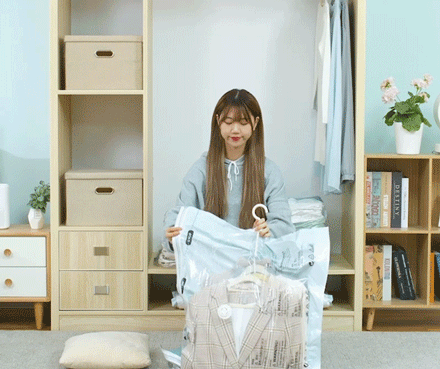 还能直接挂在衣柜上,原地压缩,衣柜都要宽敞不少,效果立竿见影!