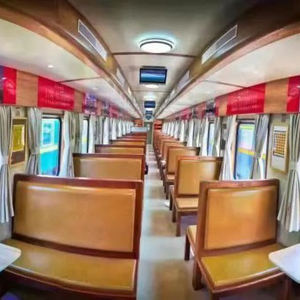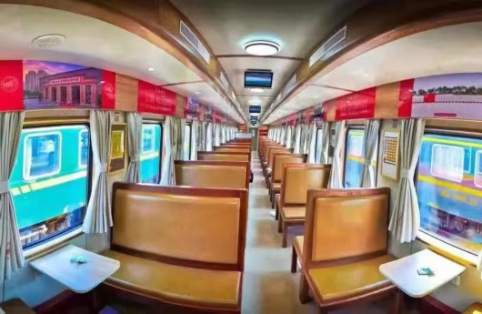 该趟列车将采用9节编组,内部应用复古装饰元素,外部以红、金、绿为配色,整车兼具红色文化元素和20世纪20年代古朴风格。其中两节车厢被打造成为移动的历史展览馆,通过大量的实物和图片来展现红色旅游列车的历史文化和时代特色,在车内就可以看到百年前上海和嘉兴两地的火车站旧影以及上海博文女校、嘉兴狮子汇渡口、宣公桥和嘉兴南湖等旧时照片,以及热心人士为红色旅游列车提供的20世纪60年代上海中国旅行社组织到嘉兴旅行的广告宣传单、1971年发行的普14革命圣地邮票等实物展品,为红色旅游列车增添了时代色彩。