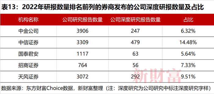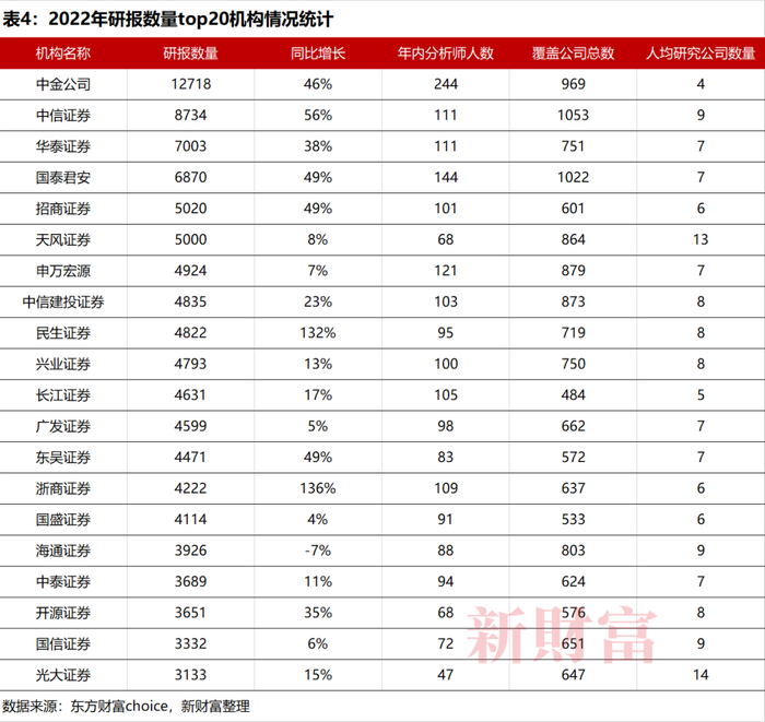 从研报数量看,中金公司以12718份产量,继续成为2022年研报产出最多的机构,同比增长45.79%。