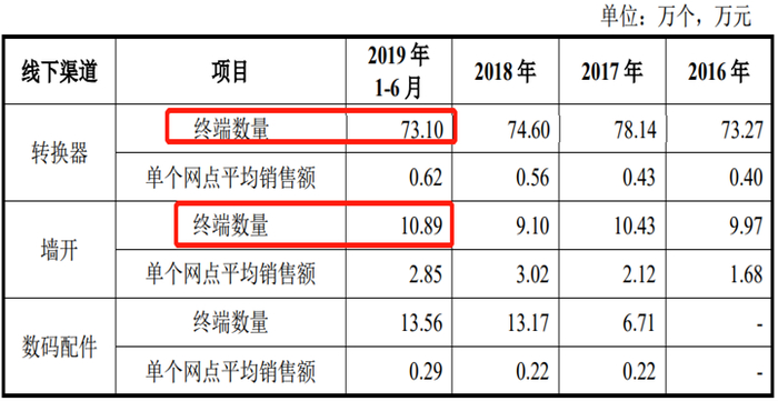 公牛招股书显示,截至2019年6月末,公司累计有近100万个(目前已超过11万个)终端网点,这其中转化器网点数量最多,达到73万个。