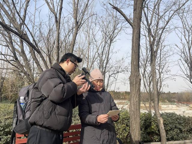 封面新闻记者在“三苏园”内采访胡晓娜