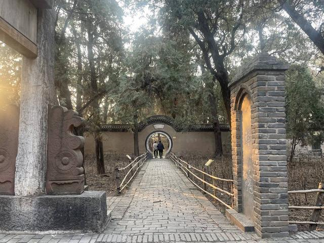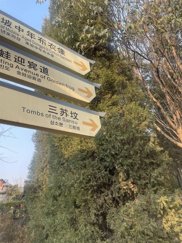 三苏墓冢的朴素也令人印象深刻:埋骨的黄土与斑驳的草茎,在阳光下,一片静谧。还未出农历正月的中原,新芽未吐,草色未青,盛大的春天还没有到来。园内遍植柏树,凌冬不凋,陪伴着长眠地下的二苏父子。