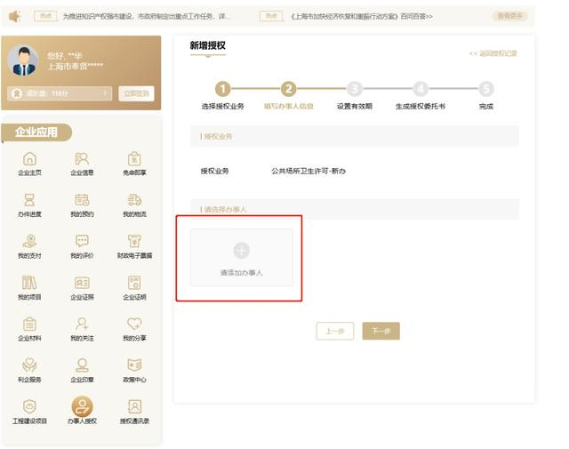 点击“请添加办事人”
