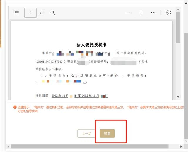 确认委托书无误后,点击签章按钮进行签章。