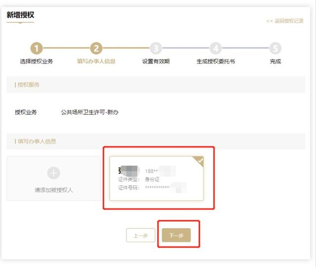 选择这个需要授权的办事人,点击下一步。