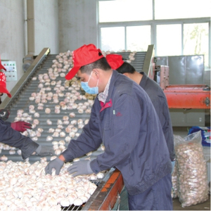 黎明食品工人在保鲜大蒜车间对大蒜分级挑拣。 图片由受访者提供