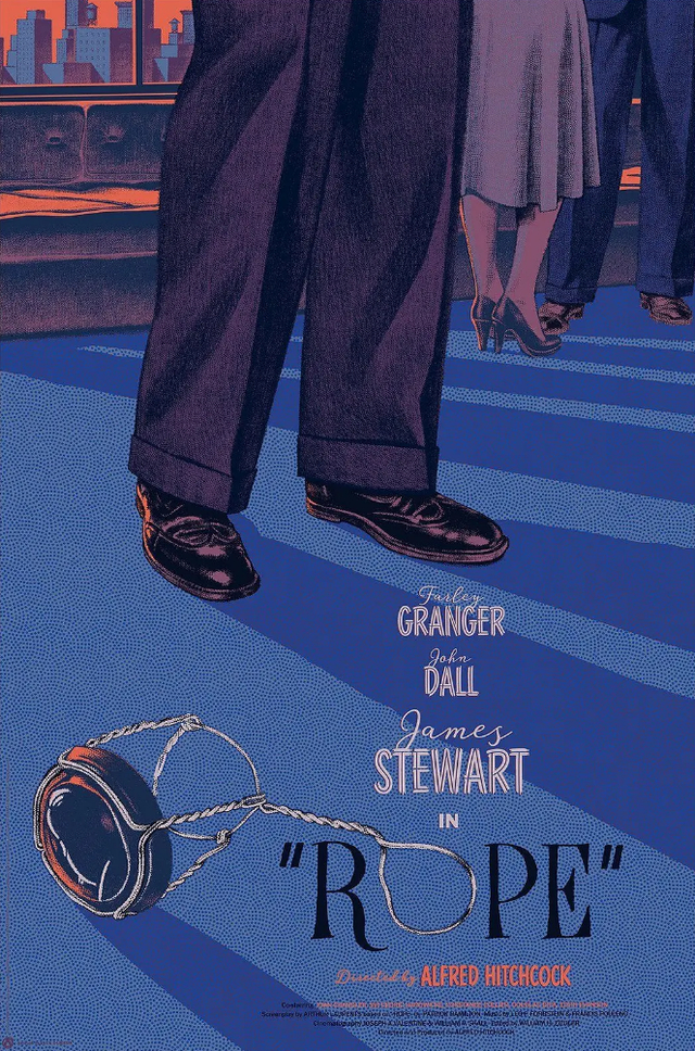 这个“杀人藏尸”的故事发生在一个房间,使用演员的背影黑幕,以掩饰不同镜头的剪辑,最终造成“一镜到底”的视觉假象。希区柯克之所以使用这种方式“造假”,实在是受限于电影胶片的长度,不得不使用多个镜头进行弥合。