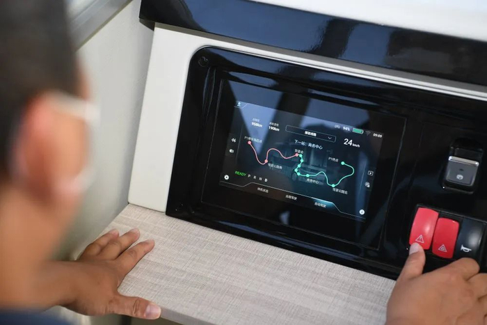 工作人员在雄安新区对一辆无人驾驶车进行上路测试(2022年5月27日摄)。