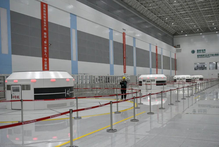 2月21日,工人在国网新源河北丰宁抽水蓄能电站厂房内工作。
