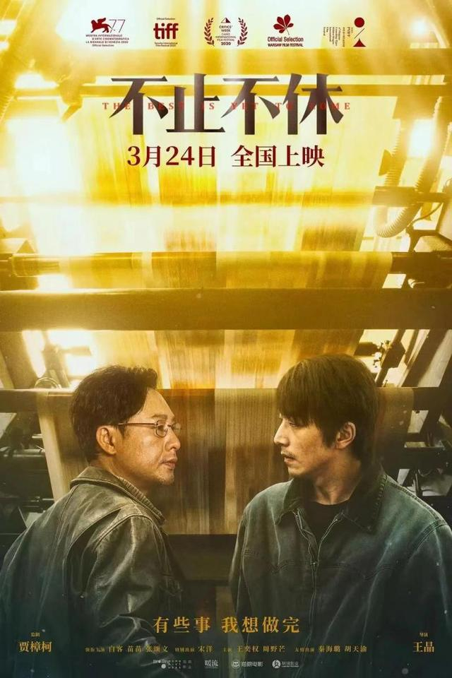 《不止不休》讲述了纸媒为王的时代,一位涉世未深的报社实习记者韩东(白客 饰)试图通过一篇新闻报道,去改变一亿人的命运的故事。海报中,冷暖色调交织,呈现出现实与理想的碰撞,新人记者韩东充满迷茫、纠结,资深记者黄江(张颂文 饰)则态度坚定,新老记者的眼神对峙中透出复杂情绪,似乎诉说着各自的坚持。身后的报纸印刷机深度还原纸媒黄金时代的氛围感,并见证着他们笔下的新闻故事,履带之上充满光明与希望。他们用笔触记录着时代洪流中的真实故事,一起探寻新闻背后的真相。